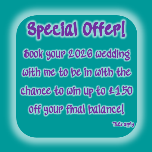 I have a special offer running for the rest of the year… All new 2024 wedding bookings from 1st September 2023 will be placed into a draw where one lucky couple will win up to £150* towards their final wedding balance!